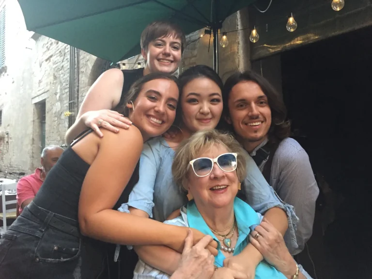 Joan Patenaude-Yarnell with students in Italy